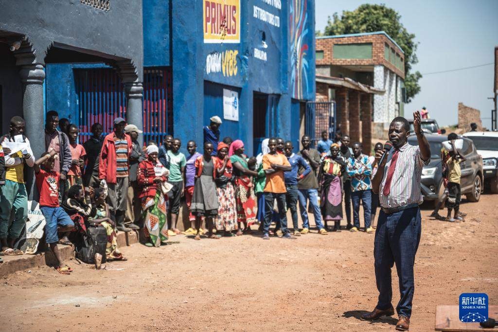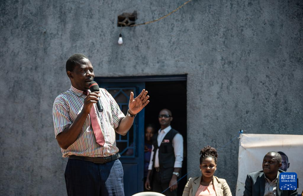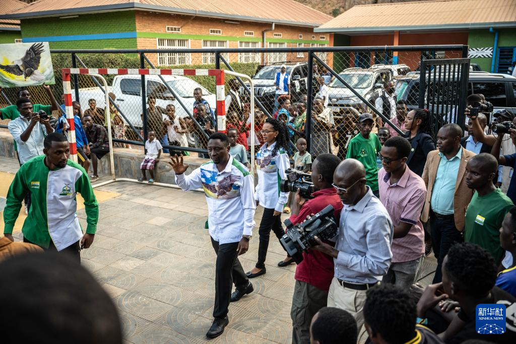 7月13日,在卢旺达吉昆比,独立候选人菲利普·姆帕伊马纳(右一)进行竞选演讲。 卢旺达大选将于7月15日举行。 新华社记者 王冠森 摄