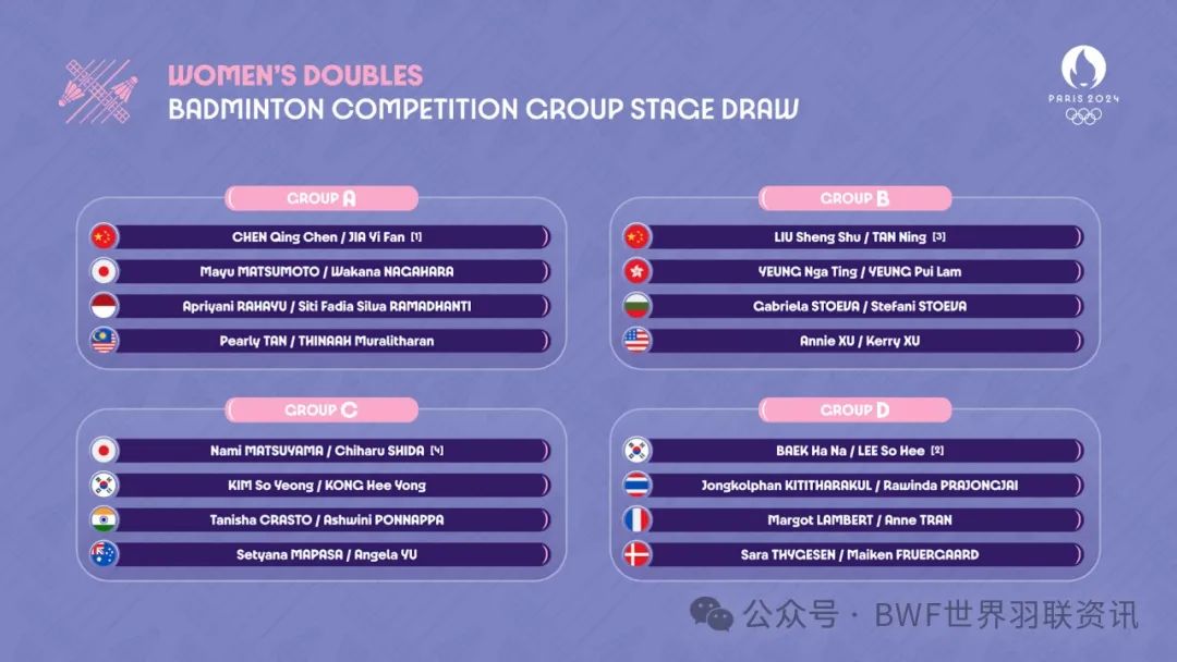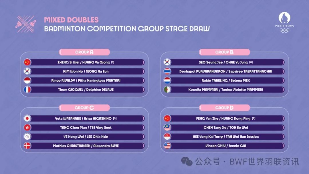 聚焦巴黎 | 羽毛球女双、混双项目抽签结果出炉!黄东萍、谭宁被分在……