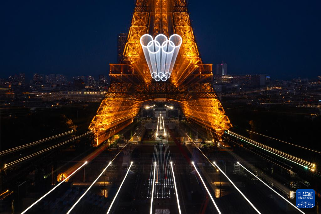 7月14日是法国国庆节。奥运元素在国庆节光影焰火秀中精彩亮相。