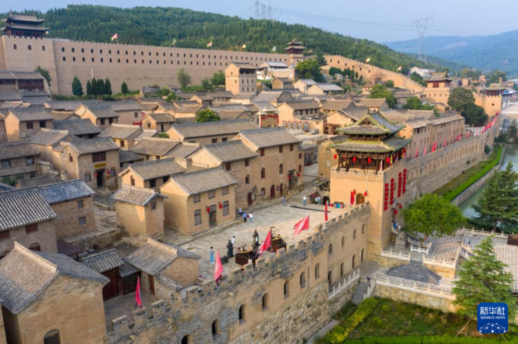 游客参观湘峪古堡(7月11日摄,无人机照片)。