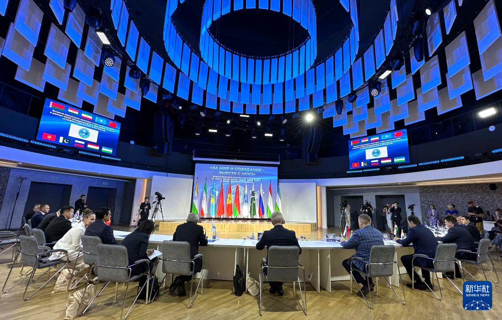 这是7月12日在白俄罗斯维捷布斯克拍摄的上海合作组织成员国文化部长会议现场(手机照片)。