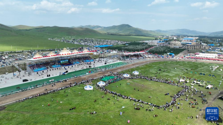 这是7月17日在乌兰毛都苏木民族体育综合训练基地拍摄的活动现场(无人机照片)。
