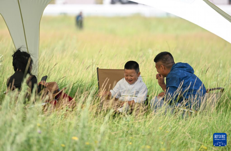 7月17日,游客在乌兰毛都苏木民族体育综合训练基地休憩。