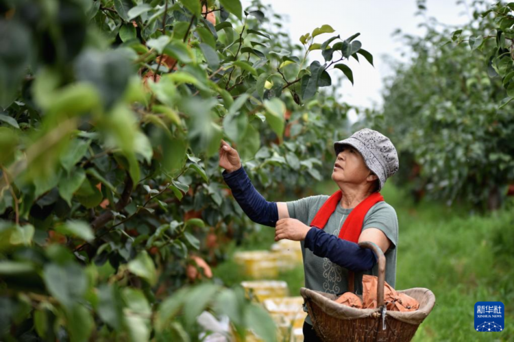 7月23日,果农在威县袁家庄村梨园内采摘梨果。