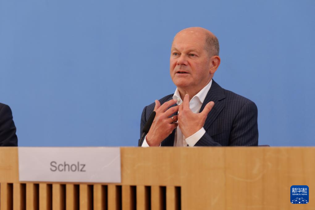 7月24日,德国总理朔尔茨在柏林举行的新闻发布会上讲话。新华社记者 李函林 摄