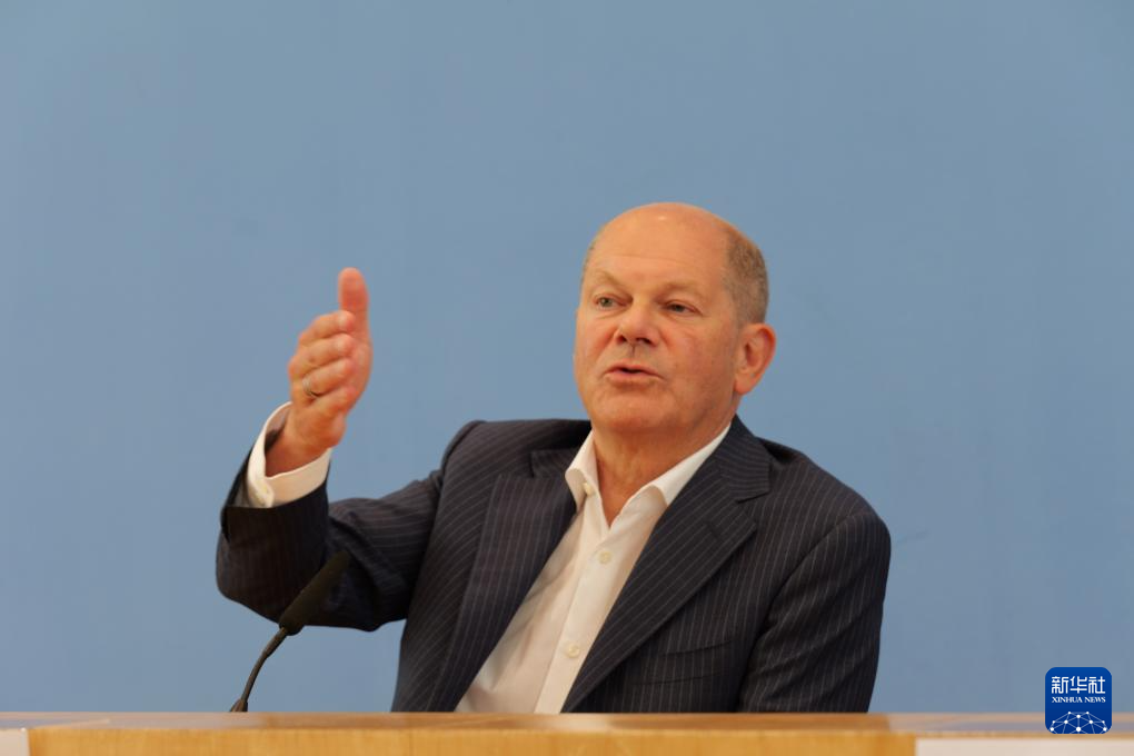 7月24日,德国总理朔尔茨在柏林举行的新闻发布会上讲话。新华社记者 李函林 摄