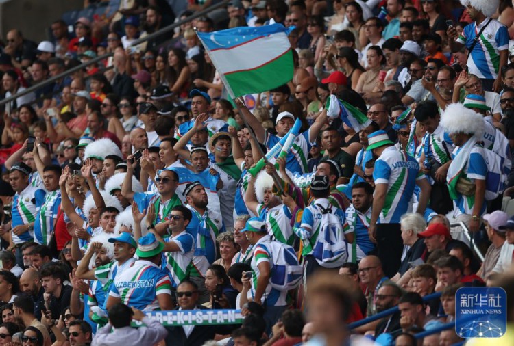 乌兹别克斯坦队球迷在看台加油助威。新华社记者 黄宗治 摄