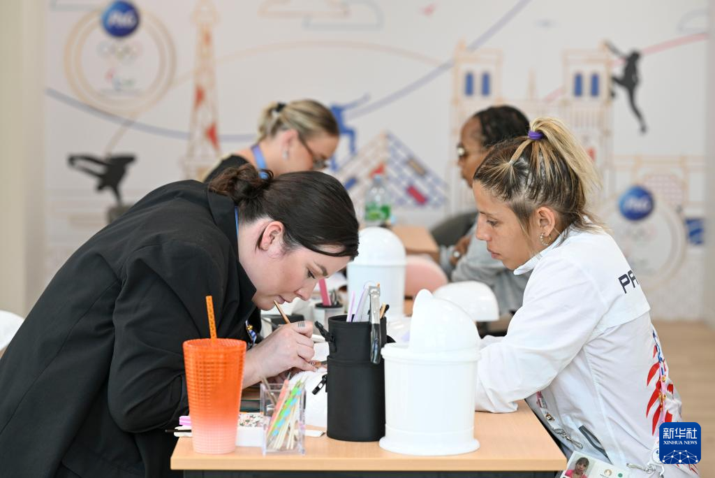 7月23日,运动员在巴黎奥运村内体验美甲服务。 当日,巴黎奥运会组委会邀请媒体记者探访巴黎奥运村。巴黎奥运村占地约52公顷,位于小巴黎北部近郊,共建成了82栋建筑,约3000套公寓。奥运会期间,这里将接待超过14000名运动员及工作人员,残奥会期间将接待约9000人。 新华社记者 胡虎虎 摄