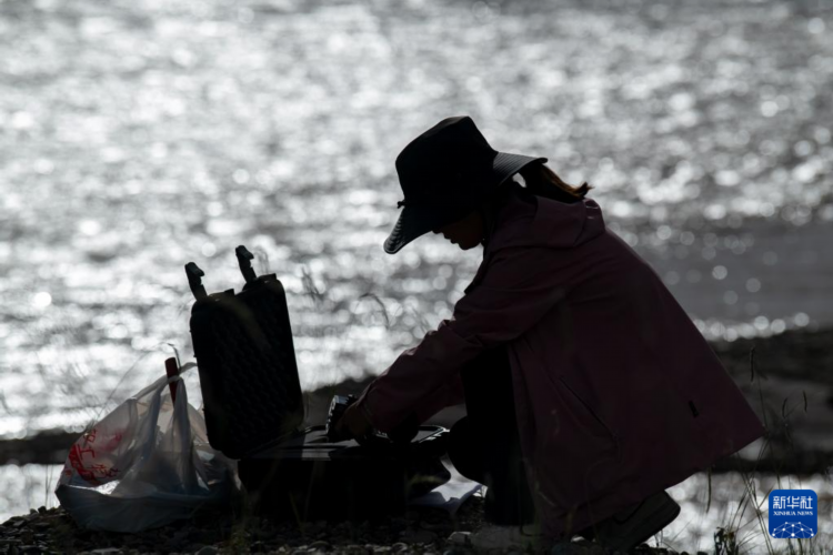 7月21日,长江科学院河流研究所的刘玉娇在扎曲杂多段进行流速测量。