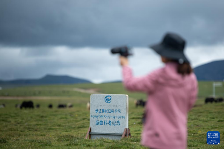 7月22日,长江科学院河流研究所的刘玉娇在长江南源当曲源进行流速测量。