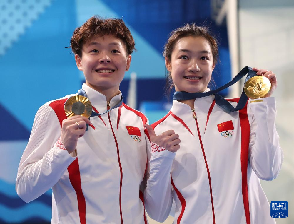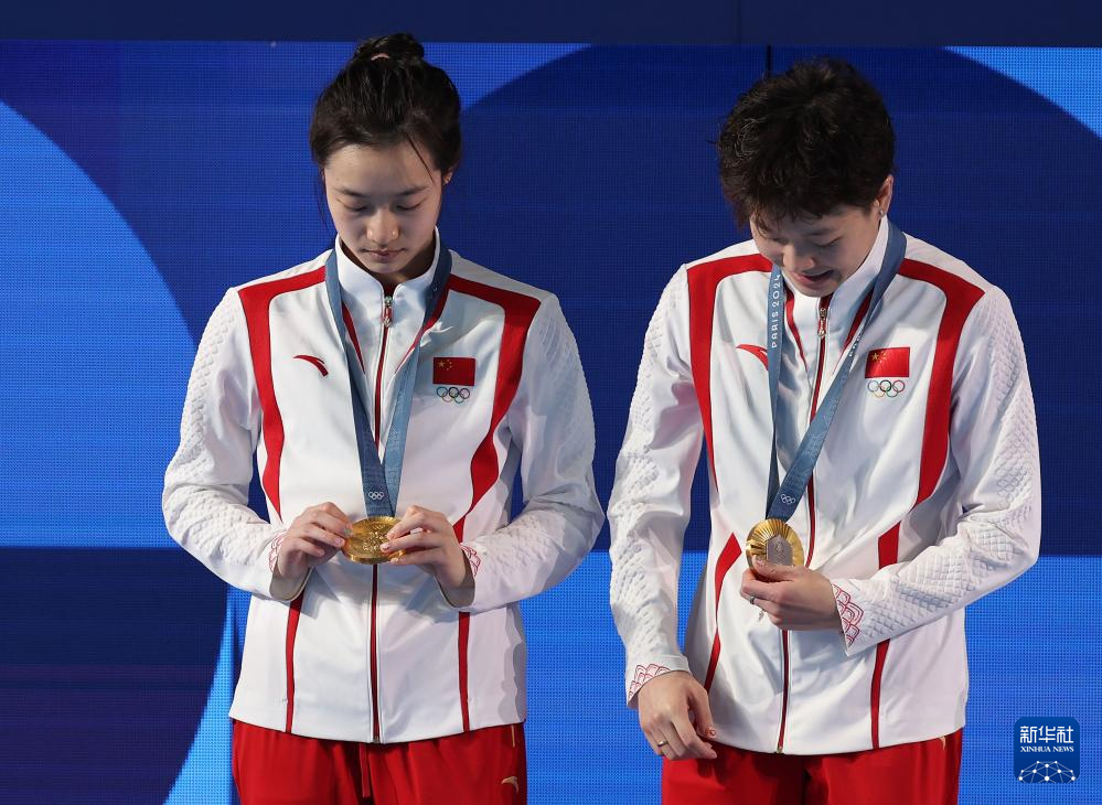 7月27日,中国选手昌雅妮(右)/陈艺文在颁奖仪式上。新华社记者 张玉薇 摄
