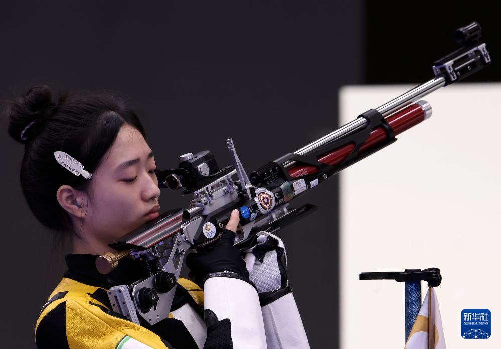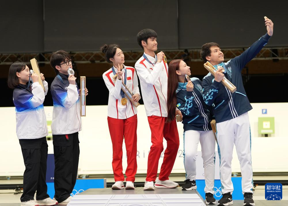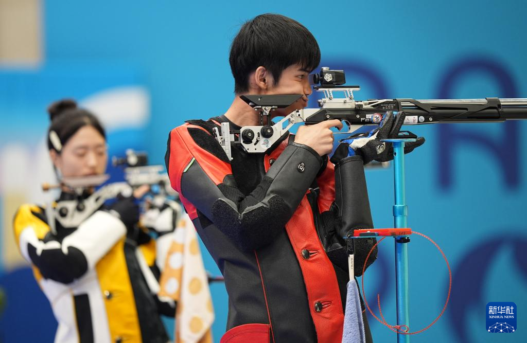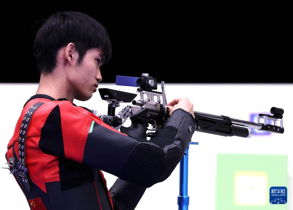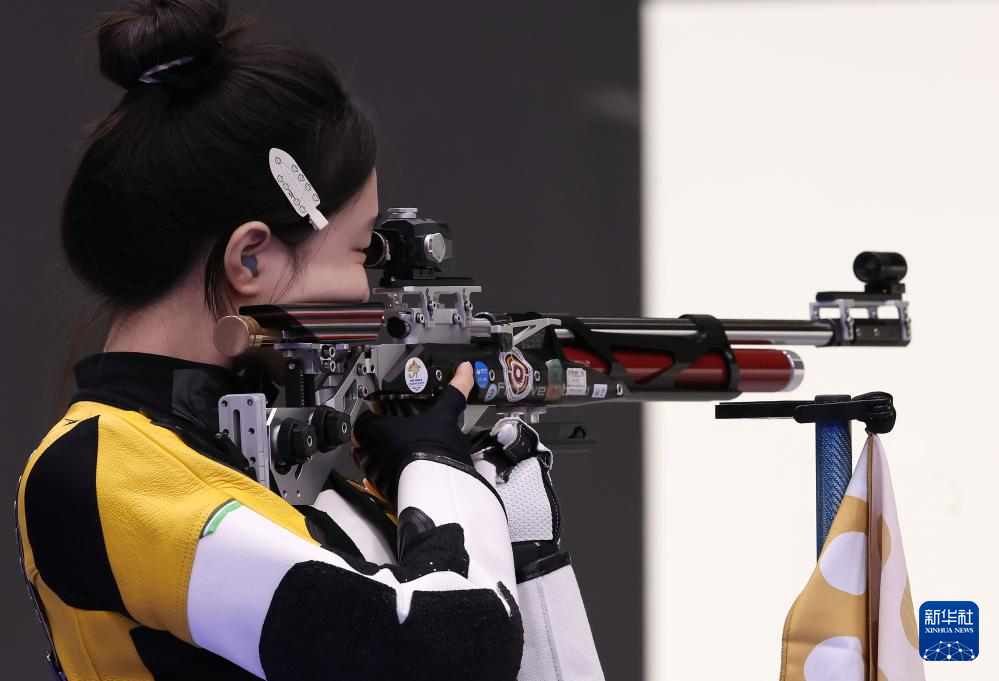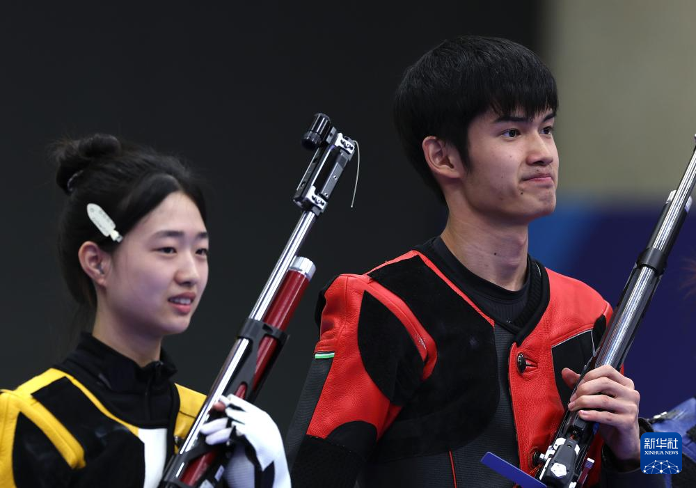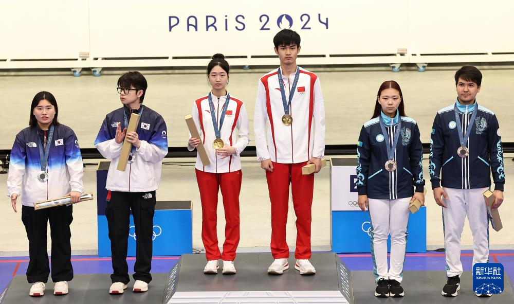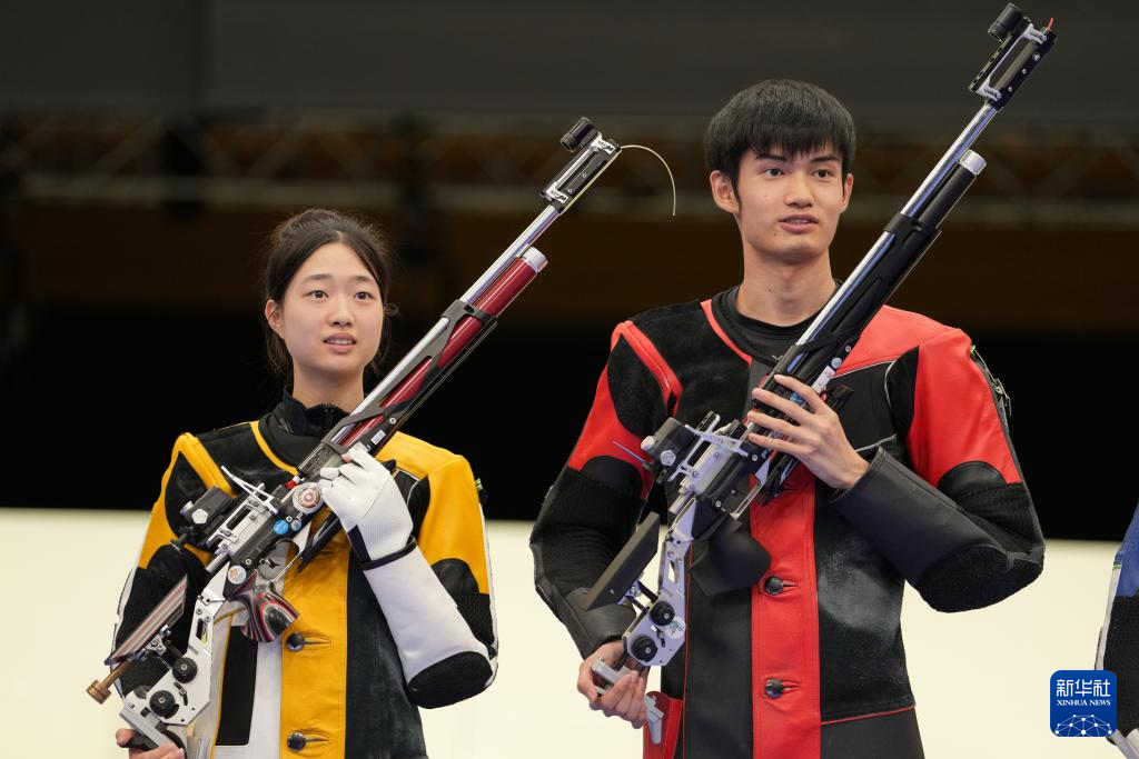 当日,在法国沙托鲁举行的巴黎奥运会射击10米气步枪混合团体决赛中,中国选手黄雨婷/盛李豪夺冠,赢得巴黎奥运会首枚金牌。