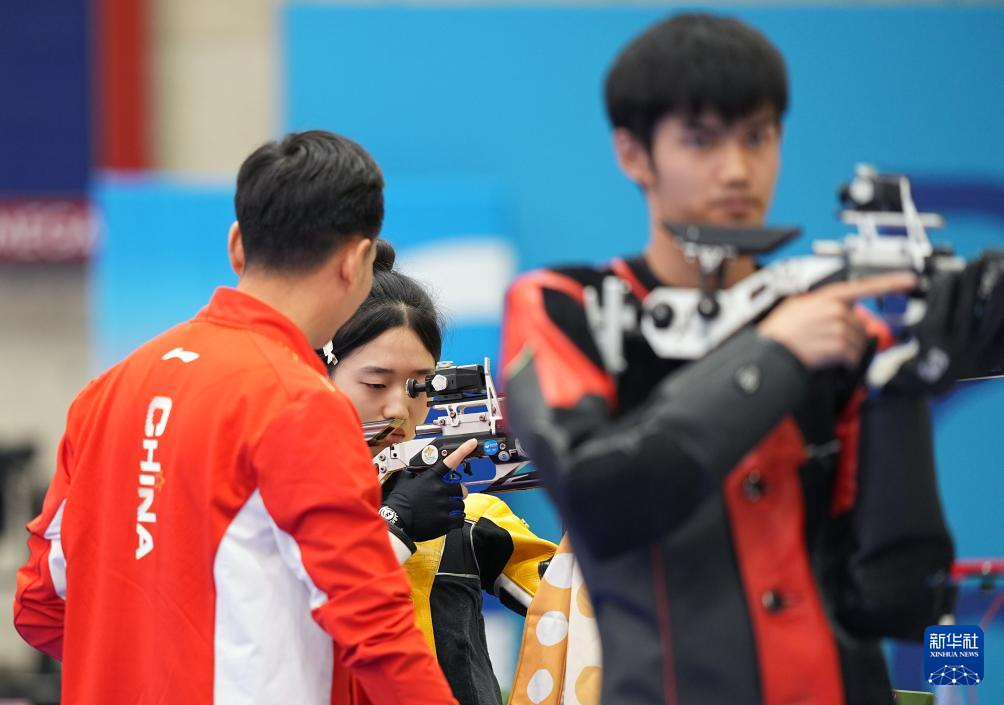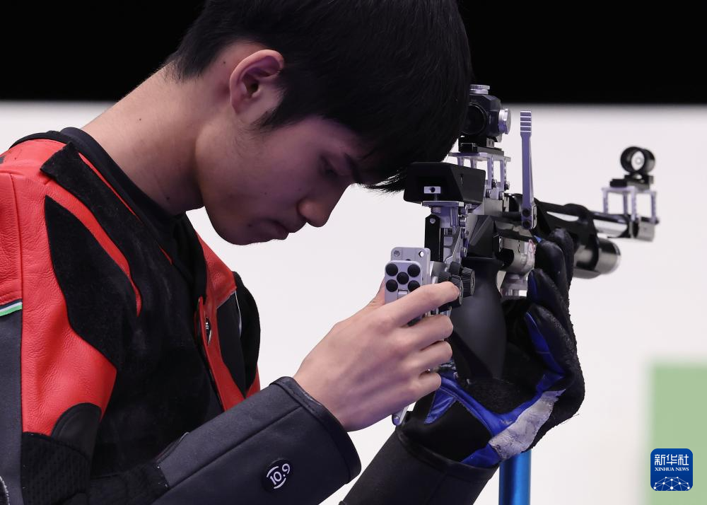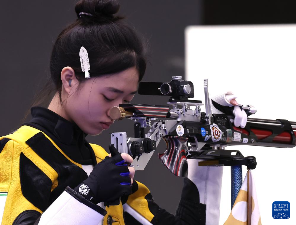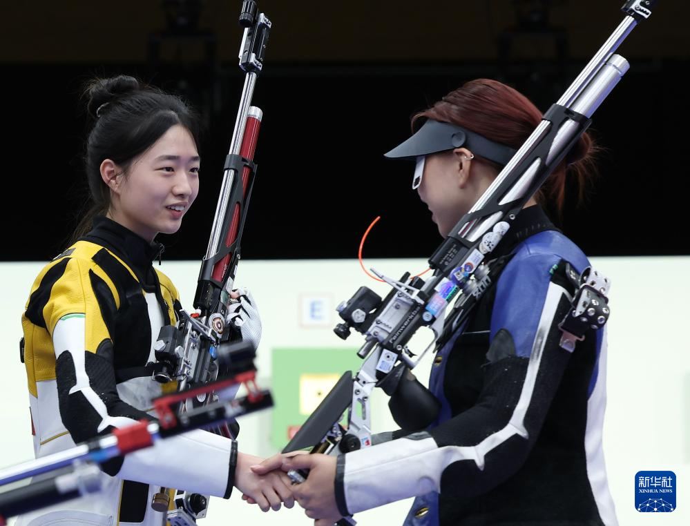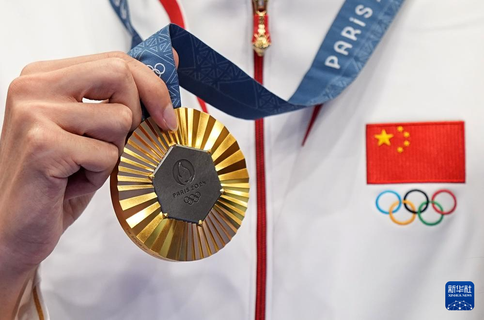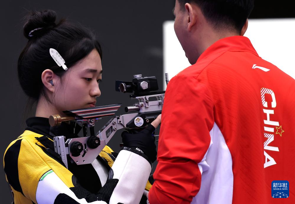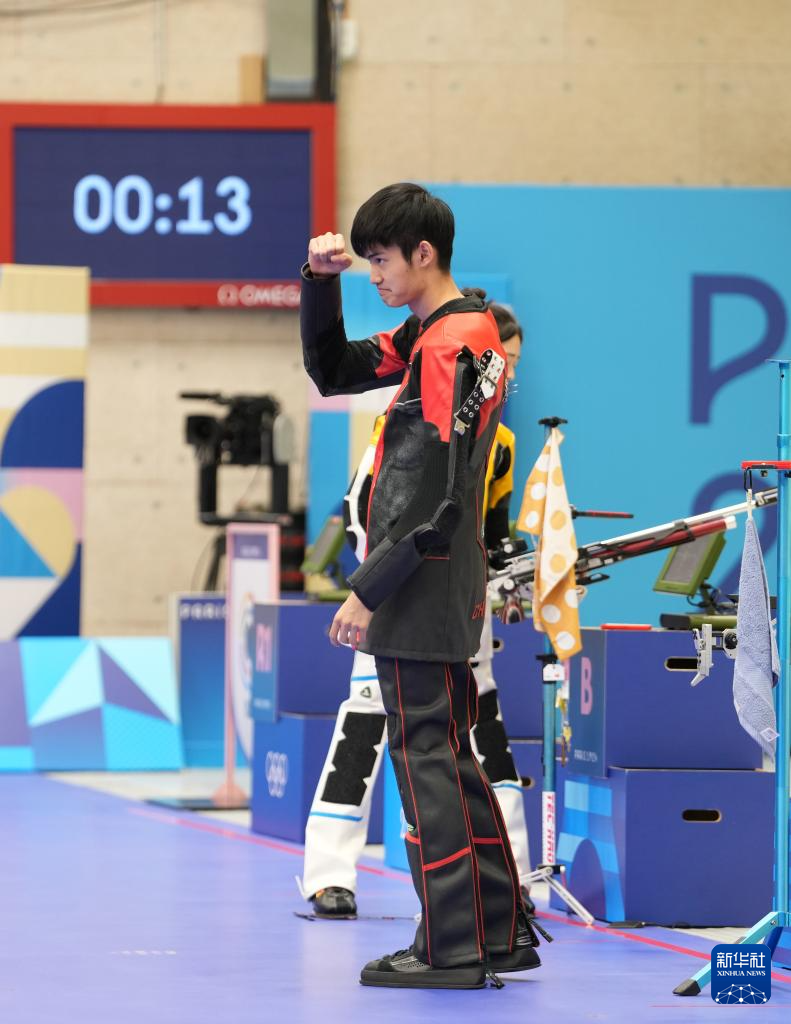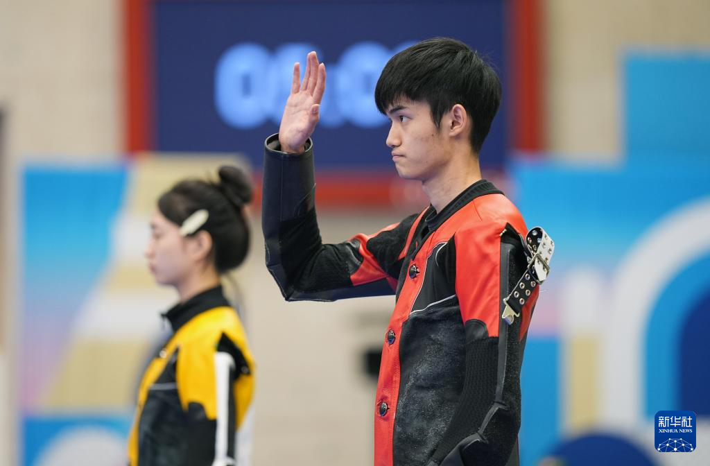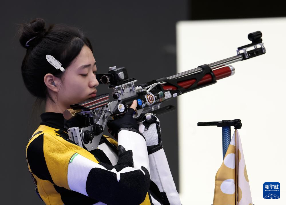 当日,在法国沙托鲁举行的巴黎奥运会射击10米气步枪混合团体决赛中,中国选手黄雨婷/盛李豪夺冠,赢得巴黎奥运会首枚金牌。