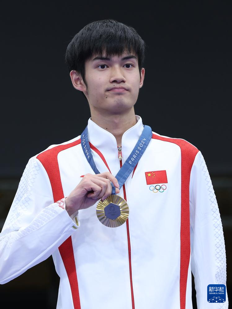 7月27日,中国选手盛李豪在颁奖仪式上。新华社记者 赵丁喆 摄