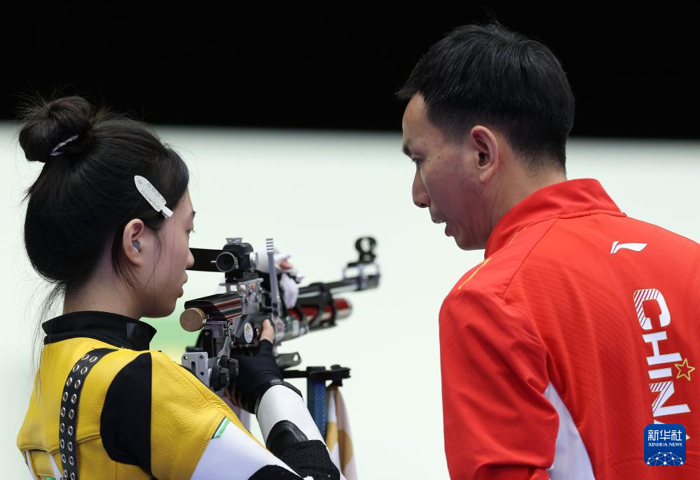 7月27日,中国队教练与选手黄雨婷(中)交流。新华社记者 鞠焕宗 摄