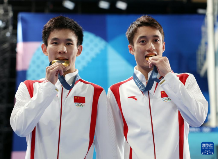 当日,在巴黎奥运会跳水男子双人十米台决赛中,中国选手练俊杰/杨昊夺得金牌。