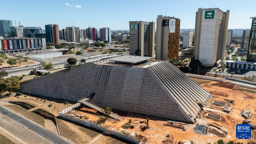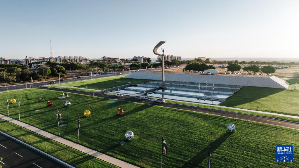 这是2024年7月14日在巴西首都巴西利亚拍摄的土著人民纪念馆(无人机照片)。 巴西利亚以其城市规划及城市建筑闻名世界。1956年,时任巴西总统儒塞利诺·库比契克决定迁都内陆。在不到4年的时间里,巴西高原之上便建起了一座别具一格的现代化城市。1960年4月21日,巴西正式迁都巴西利亚。巴西利亚于1987年被联合国教科文组织(UNESCO)列入世界文化遗产名录。 新华社记者 王天聪 摄