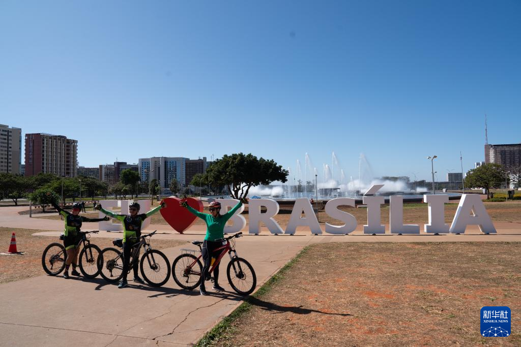 7月14日,几名自行车爱好者在巴西首都巴西利亚城市中轴线上留影。 巴西利亚以其城市规划及城市建筑闻名世界。1956年,时任巴西总统儒塞利诺·库比契克决定迁都内陆。在不到4年的时间里,巴西高原之上便建起了一座别具一格的现代化城市。1960年4月21日,巴西正式迁都巴西利亚。巴西利亚于1987年被联合国教科文组织(UNESCO)列入世界文化遗产名录。 新华社记者 王天聪 摄