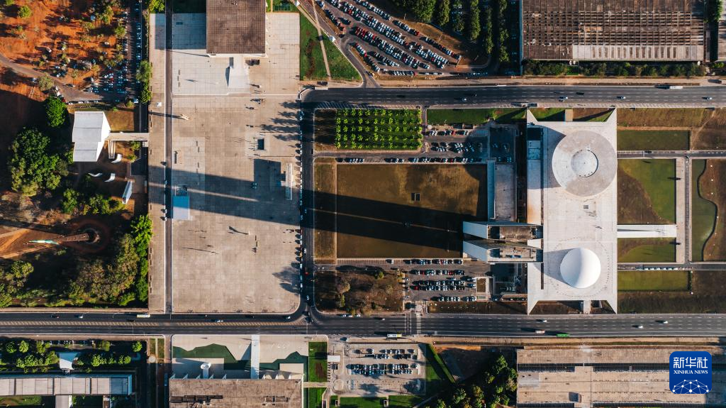 这是2024年7月16日在巴西首都巴西利亚拍摄的三权广场和最高联邦法院(无人机照片)。 巴西利亚以其城市规划及城市建筑闻名世界。1956年,时任巴西总统儒塞利诺·库比契克决定迁都内陆。在不到4年的时间里,巴西高原之上便建起了一座别具一格的现代化城市。1960年4月21日,巴西正式迁都巴西利亚。巴西利亚于1987年被联合国教科文组织(UNESCO)列入世界文化遗产名录。 新华社记者 王天聪 摄