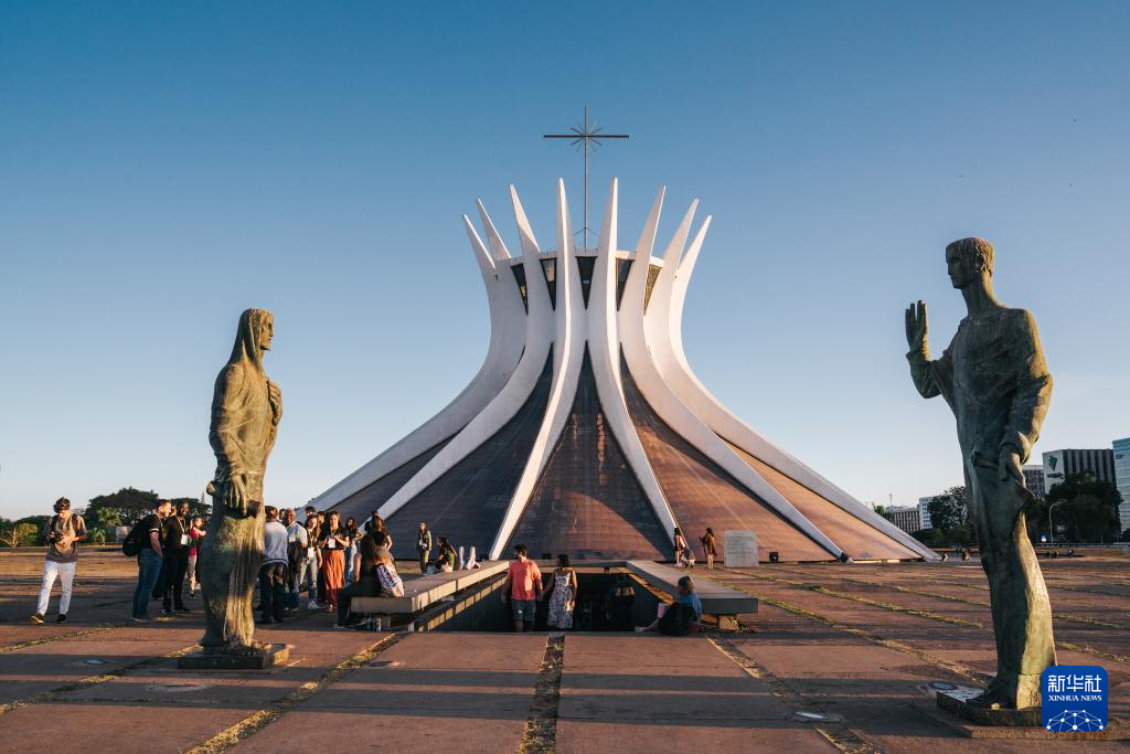 这是2024年7月14日在巴西首都巴西利亚拍摄的巴西利亚大教堂。 巴西利亚以其城市规划及城市建筑闻名世界。1956年,时任巴西总统儒塞利诺·库比契克决定迁都内陆。在不到4年的时间里,巴西高原之上便建起了一座别具一格的现代化城市。1960年4月21日,巴西正式迁都巴西利亚。巴西利亚于1987年被联合国教科文组织(UNESCO)列入世界文化遗产名录。 新华社记者 王天聪 摄