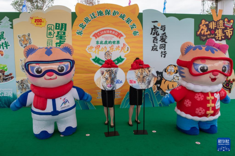 当日是全球老虎日,“东北虎的世界 世界的东北虎”全球老虎日系列主题活动在黑龙江东北虎林园枫彩广场正式举行。活动现场公布了“圈养东北虎基因组”三个重要发现,同时举行了亚冬会吉祥物回到原型诞生地的活动,吸引众多游客和市民前来参观。