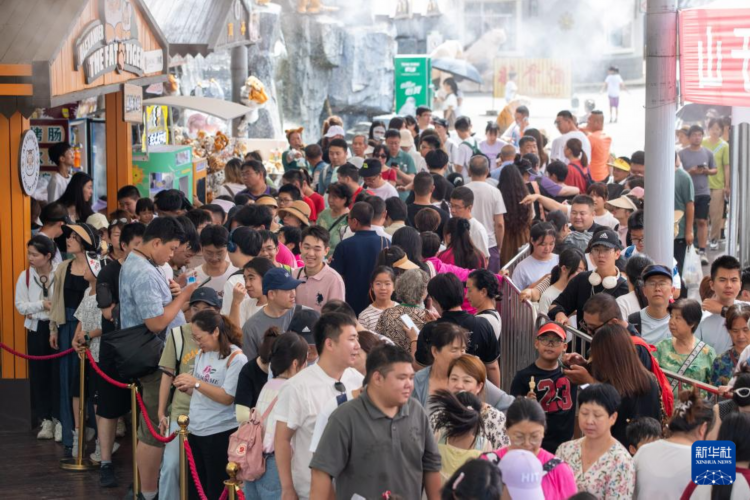 7月29日,在黑龙江东北虎林园,人们排队准备入园。