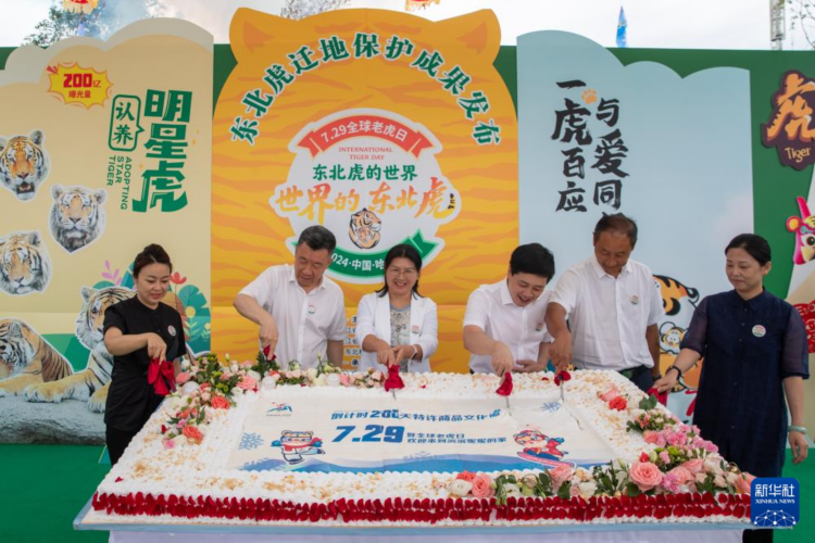 7月29日,在黑龙江东北虎林园,参会人员现场切蛋糕。