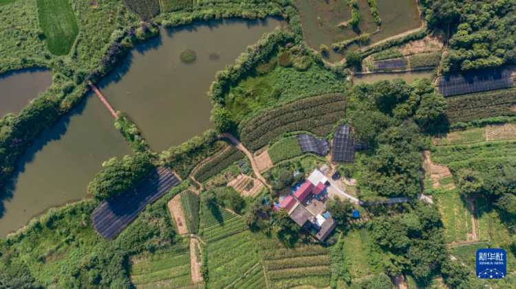 这是7月24日在安徽省铜陵市义安区天门镇新华村拍摄的朱晴雨家周边环境(无人机照片)。新华社记者 傅天 摄
