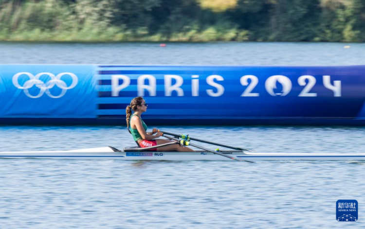 7月29日,阿尔及利亚选手尼赫德·本查德利在比赛中。当日,巴黎奥运会赛艇女子单人双桨半决赛在马恩河畔韦尔水上体育场举行。 新华社记者 孙非 摄