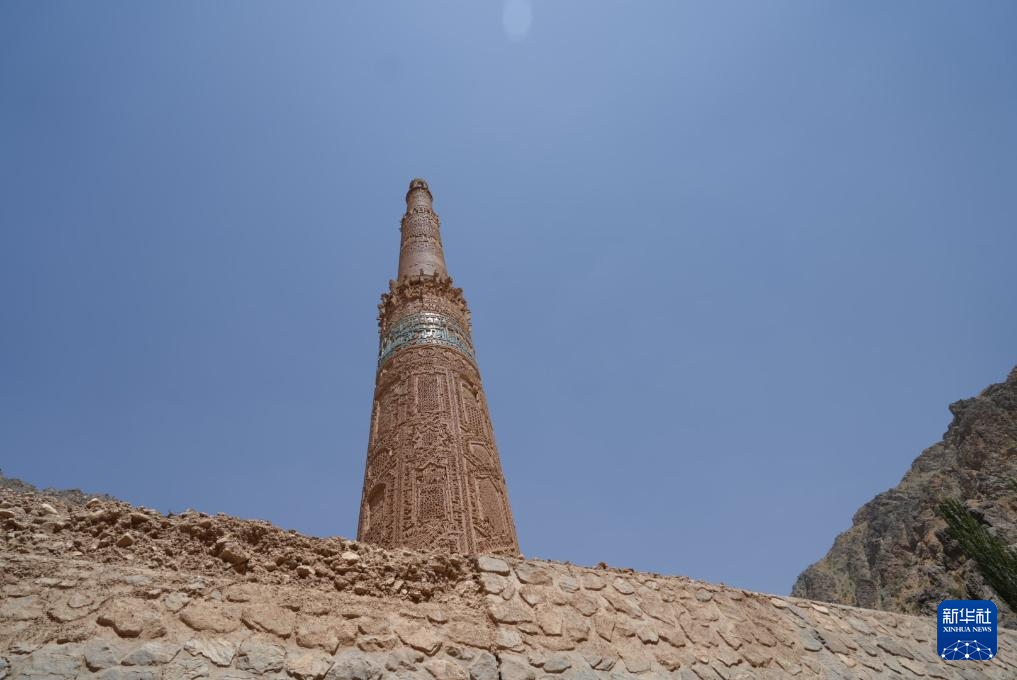 今年5月以来,阿富汗古尔省遭遇洪涝灾害,山洪越过贾姆宣礼塔周边的保护墙,淹没了塔底。当地工人通过加固保护墙等措施保护该文化遗址。