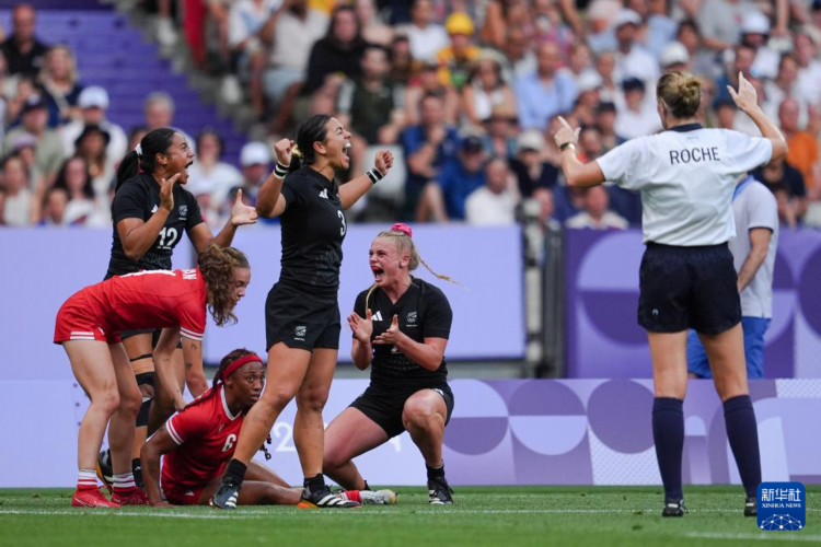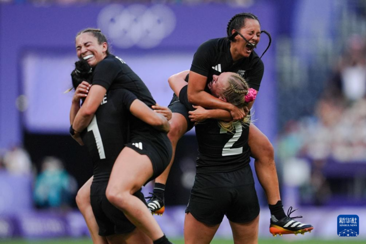 当日,在巴黎奥运会七人制橄榄球女子决赛中,新西兰队19比12战胜加拿大队,夺得冠军。