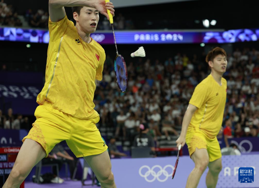 7月30日,中国组合刘雨辰/欧烜屹(左)在比赛中。新华社记者 任正来 摄
