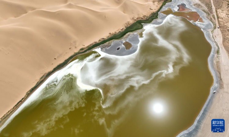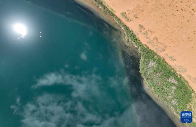 7月31日拍摄的巴丹吉林沙漠中的南海子(无人机照片)。