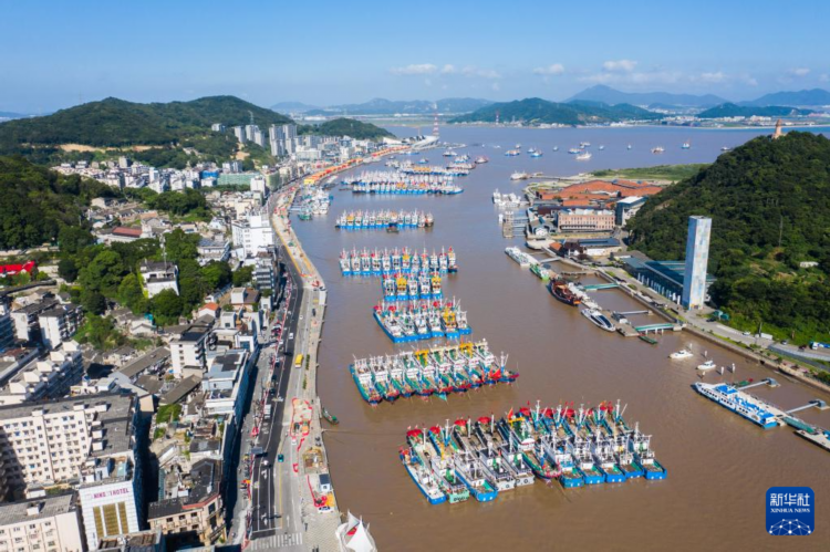 7月31日,在舟山市普陀区沈家门渔港内,渔船静待开渔(无人机照片)。