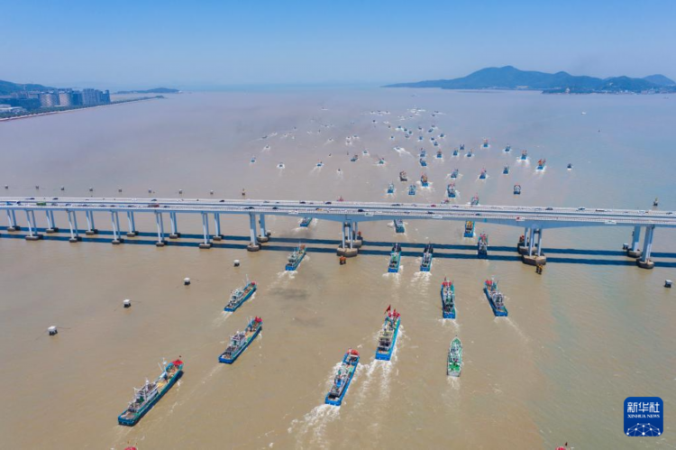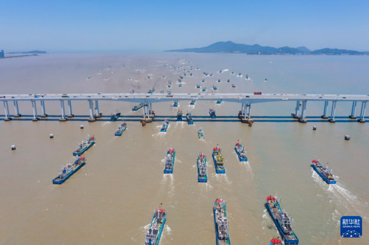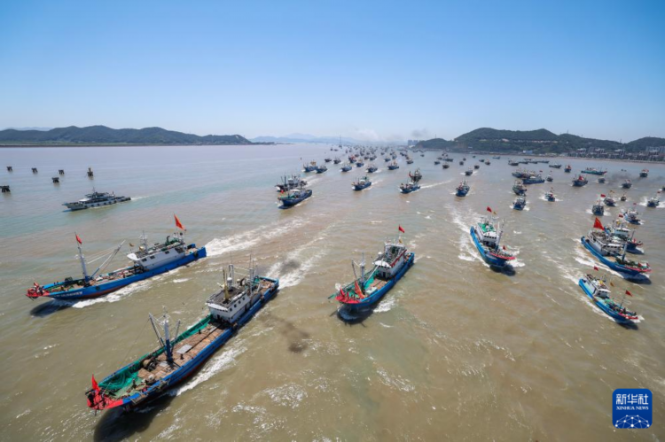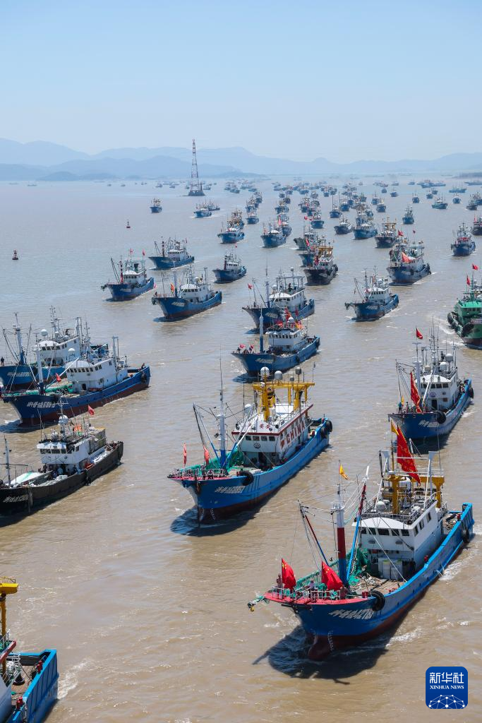 8月1日,数千艘渔船从舟山市普陀区沈家门渔港出发,前往东海海域开启捕捞作业。