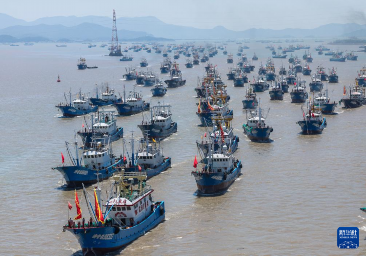 8月1日,数千艘渔船从舟山市普陀区沈家门渔港出发,前往东海海域开启捕捞作业。
