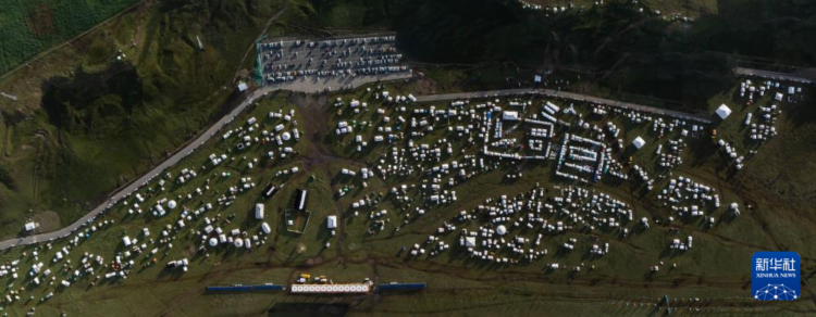 在四川省甘孜藏族自治州理塘县多旺塘拍摄的草原上的“帐篷城”(7月31日摄,无人机照片)。