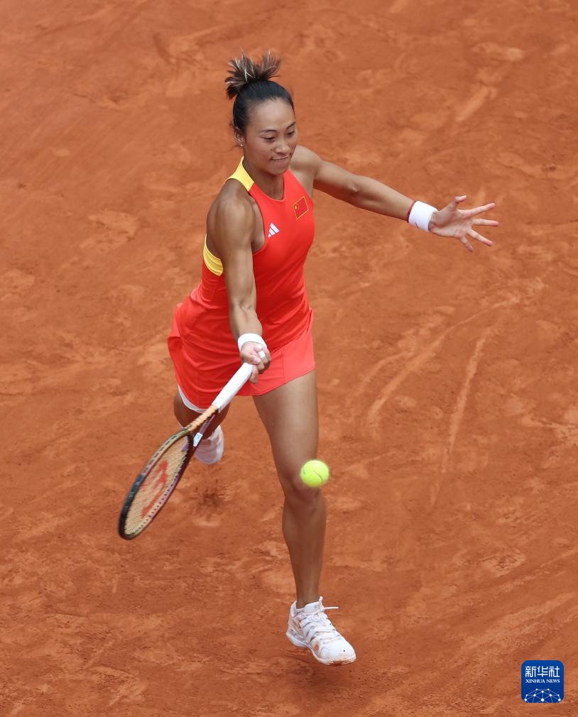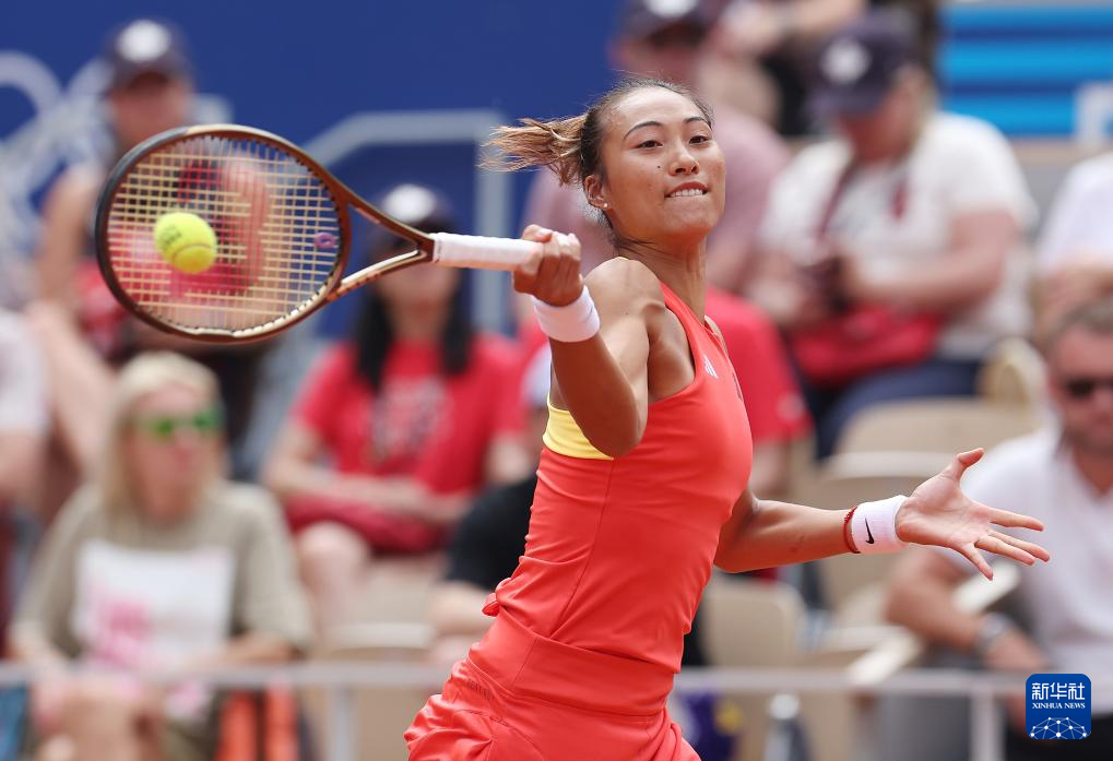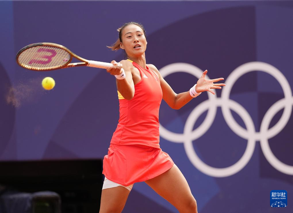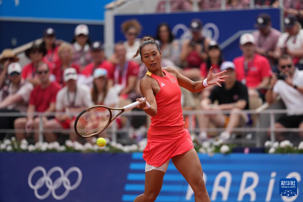 8月3日,郑钦文在比赛中回球。