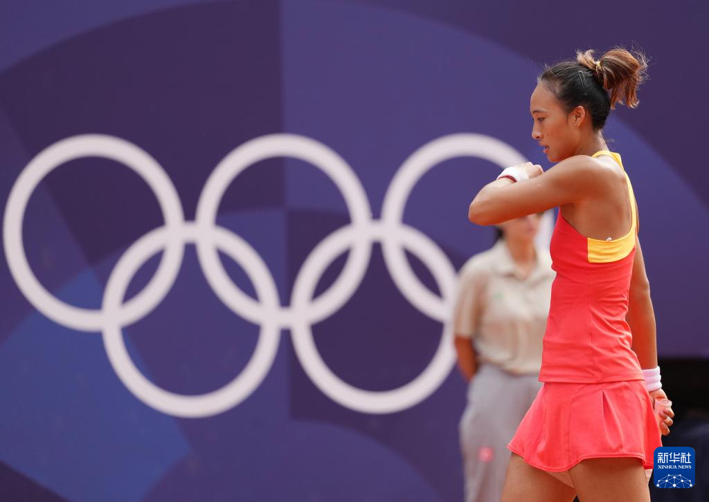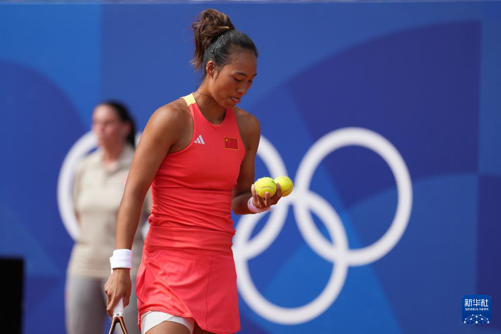8月3日,郑钦文在比赛中。