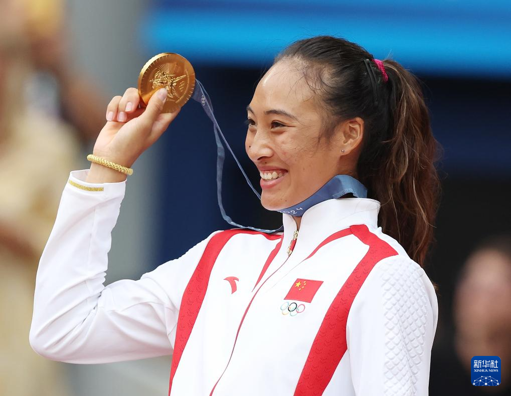 当日,在巴黎奥运会网球女子单打金牌赛中,中国选手郑钦文2比0战胜克罗地亚选手维基奇,夺得金牌。