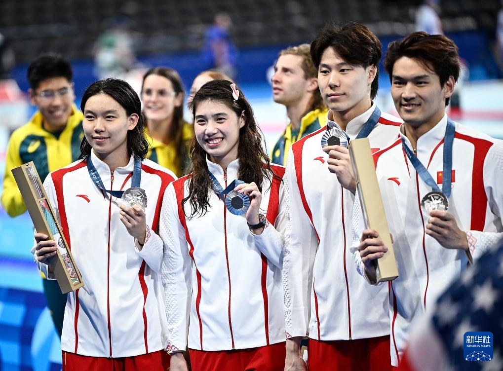 新华社巴黎8月3日电(记者夏亮、周欣)3分37秒55!在3日晚进行的巴黎奥运会男女混合4X100米混合泳接力决赛中,中国队以打破亚洲纪录的成绩摘得银牌,和获得冠军的美国队只差了0.12秒。