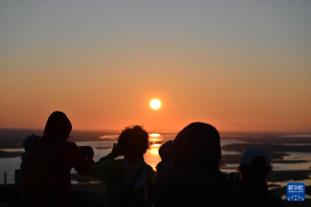 黑龙江省抚远市地处我国陆地最东端,有“华夏东极”之称。正值夏季文旅旺季,不少游客登上东极阁观赏日出。