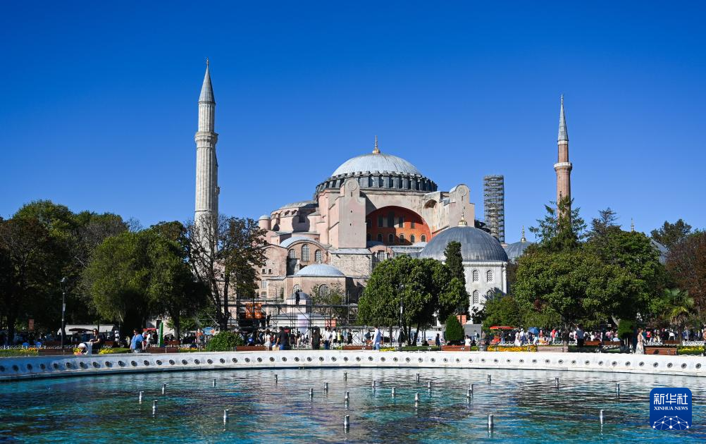 这是8月2日拍摄的土耳其伊斯坦布尔圣索菲亚大教堂。 土耳其统计局近日公布数据显示,上半年该国旅游收入增长9.3%,达到236.6亿美元。游客人数同比增长13.2%,达到2510万人次。 新华社记者 刘磊 摄 |