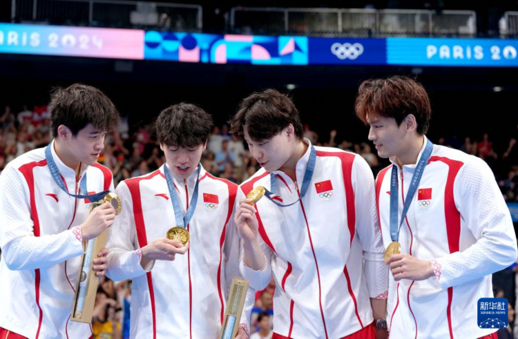 巴黎奥运会丨游泳——中国队获男子4x100米混合泳接力金牌