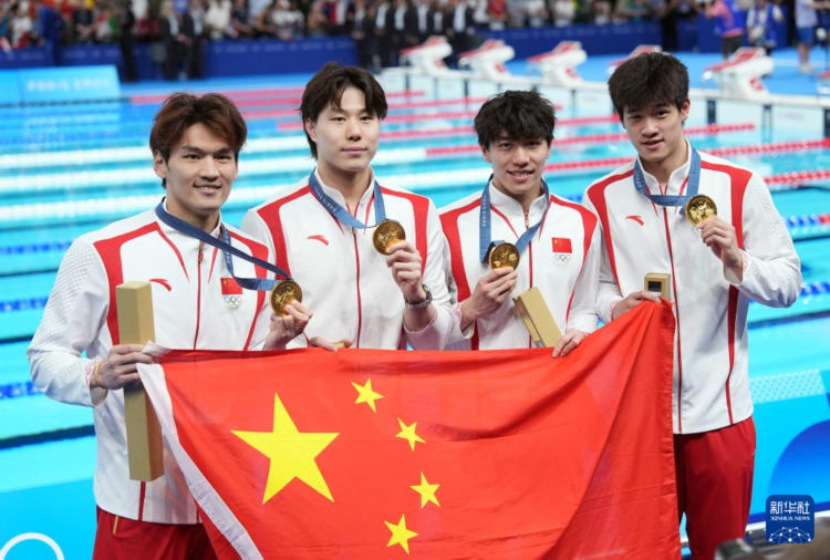 当日,在巴黎奥运会游泳项目男子4x100米混合泳接力决赛中,中国队以3分27秒46的成绩夺得金牌。