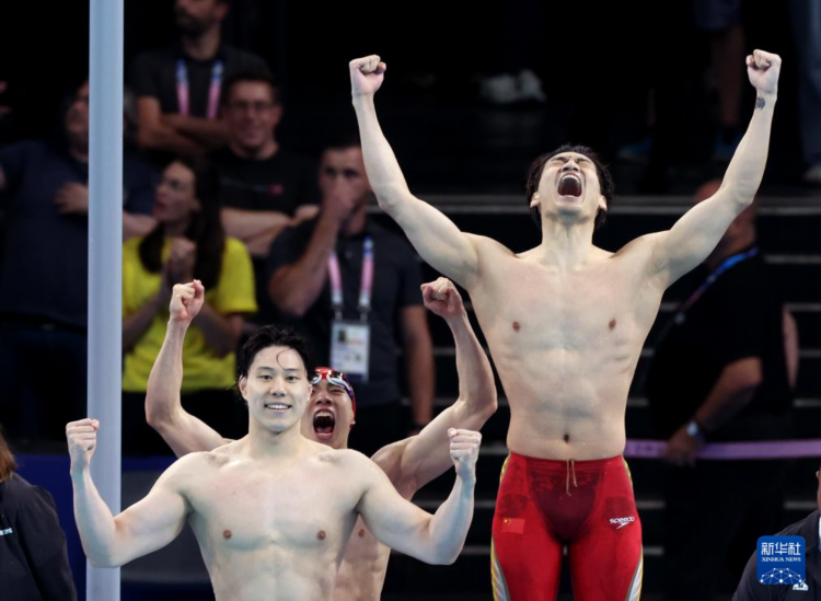 巴黎奥运会丨游泳——中国队获男子4x100米混合泳接力金牌