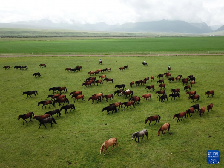 今天的山丹马场,成群的骏马在蓝天白云下驰骋,和连绵起伏的祁连山、一望无际的大草原,共同构成一幅生态和谐的美丽画卷。
