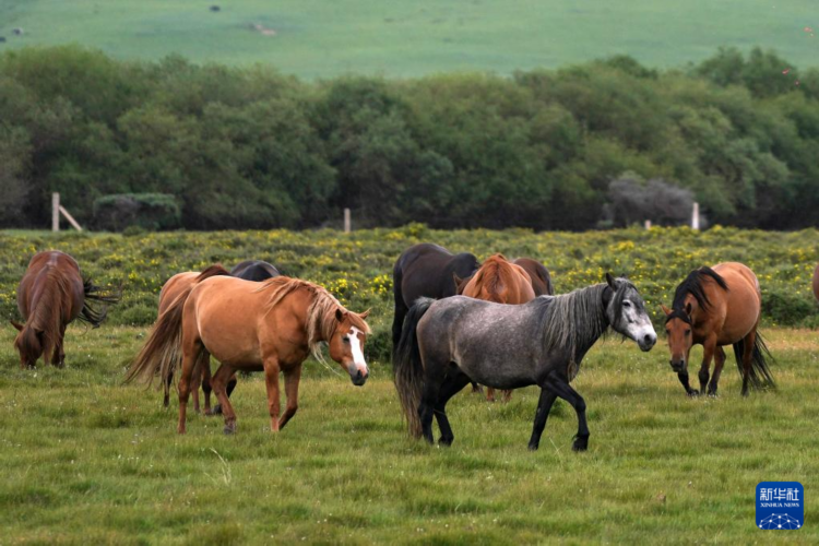 今天的山丹马场,成群的骏马在蓝天白云下驰骋,和连绵起伏的祁连山、一望无际的大草原,共同构成一幅生态和谐的美丽画卷。