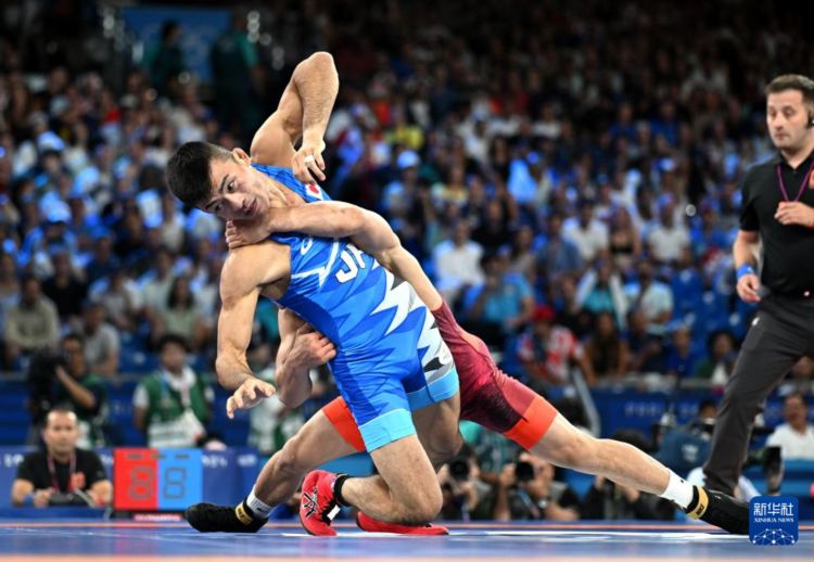 当日,巴黎奥运会举行摔跤男子古典式60公斤级半决赛。