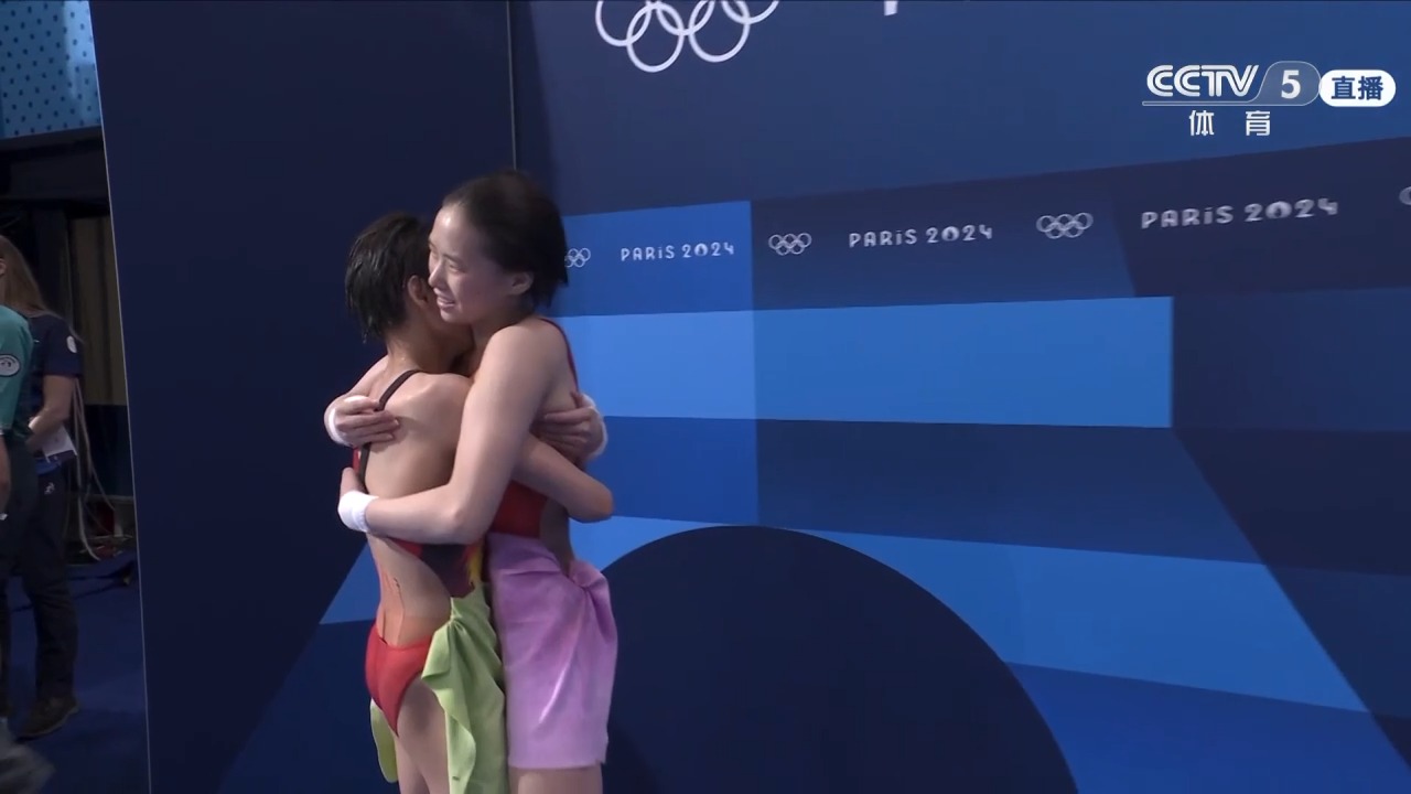 赛后,全红婵抱着教练陈若琳哭了。又跑向陈芋汐,两人暖暖相拥。